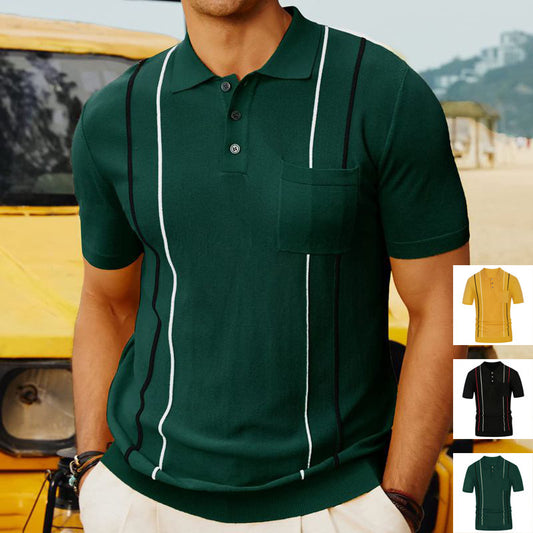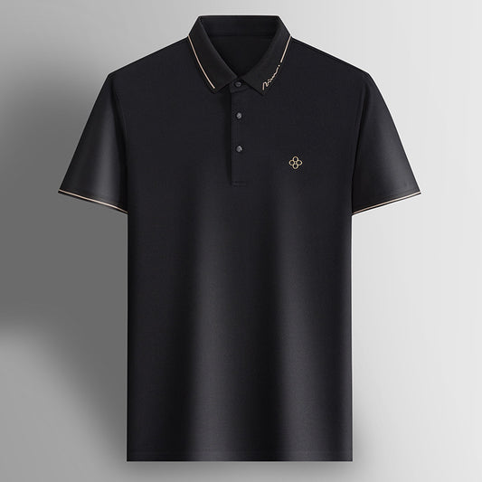 Casual Business Silk Short Sleeve T-shirt Men's Lapel Breathable Half Sleeve Loose