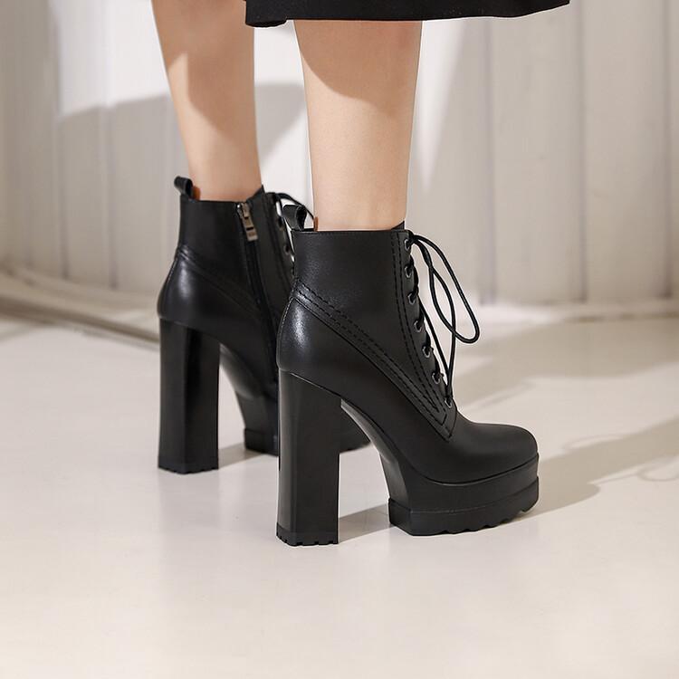 14cm Platform Lace-Up Martin Boots Round Toe Chunky Heel