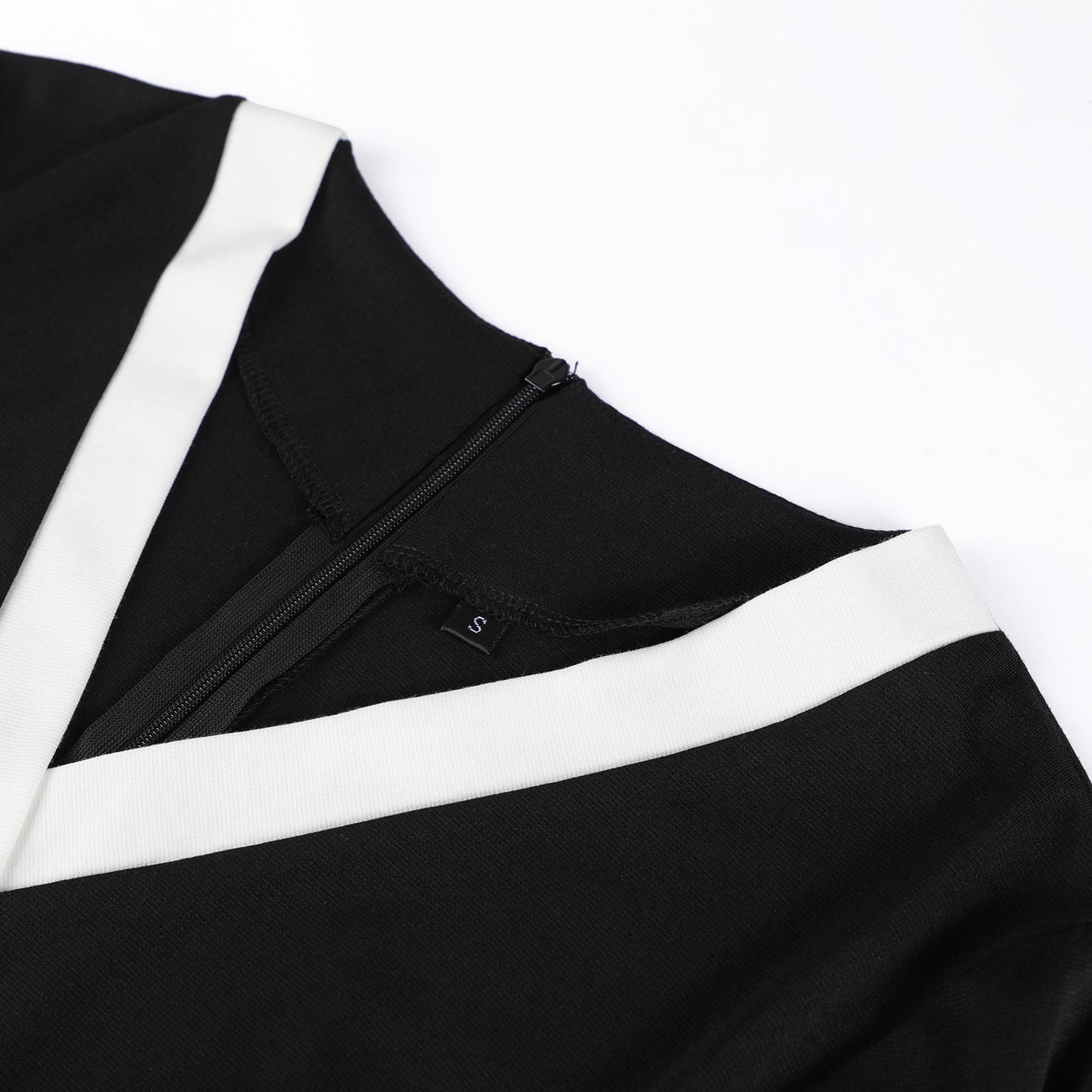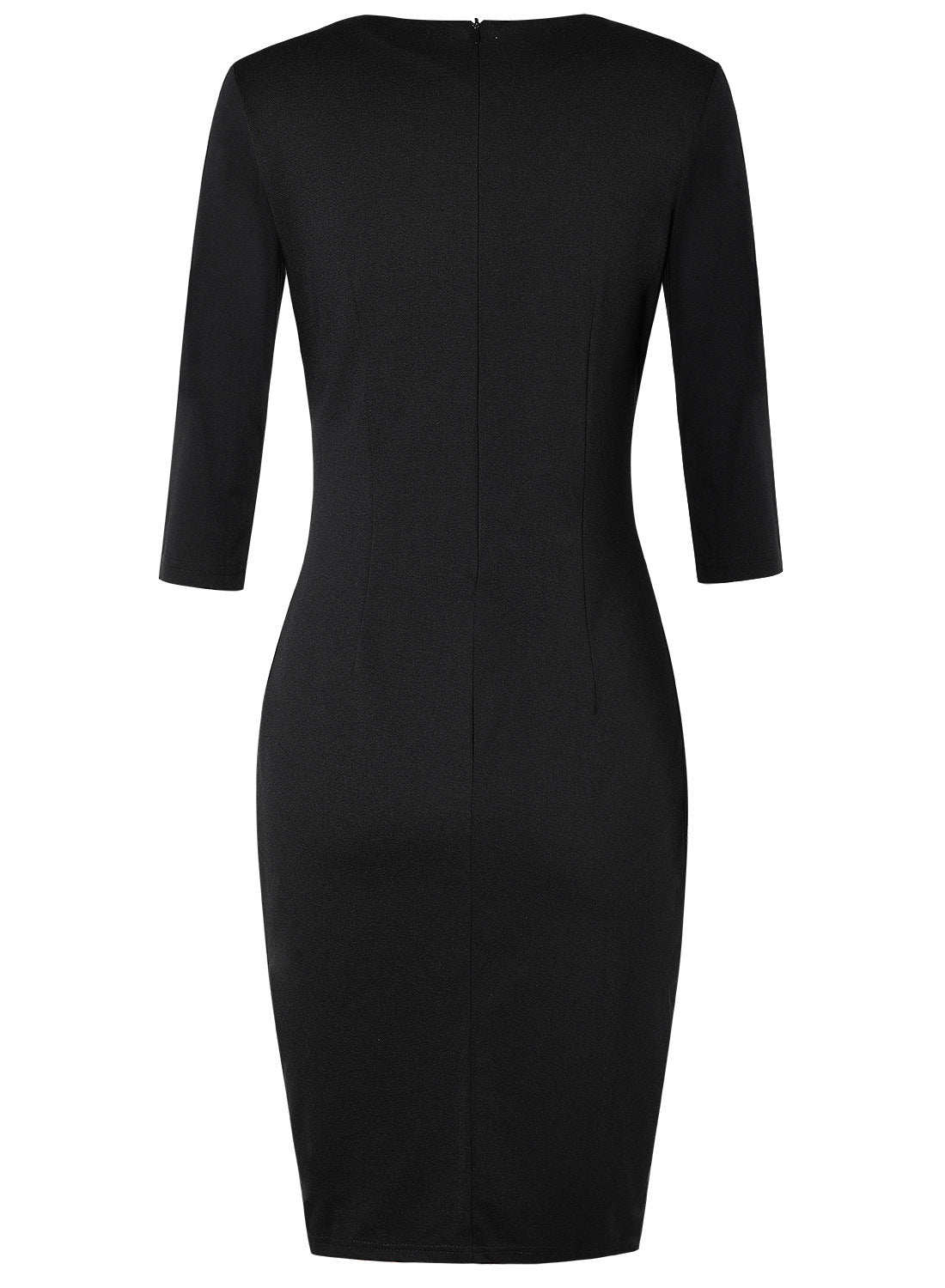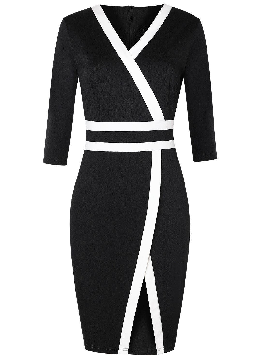 3 4 Sleeve V-Neck Stitching Professional Hip Dress