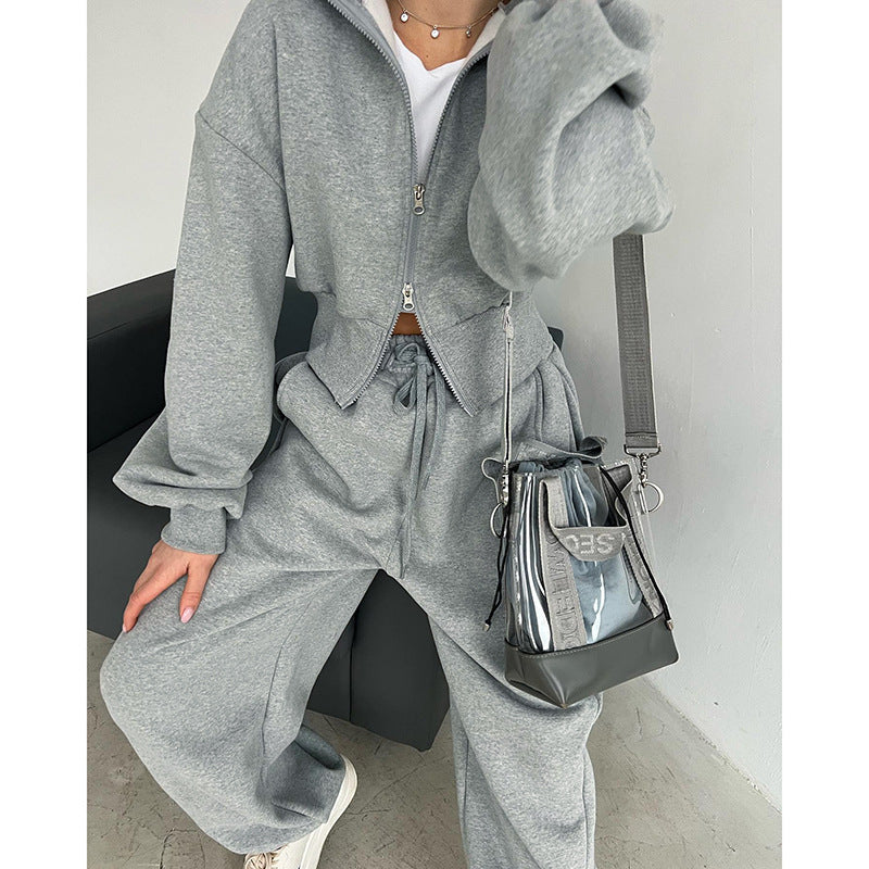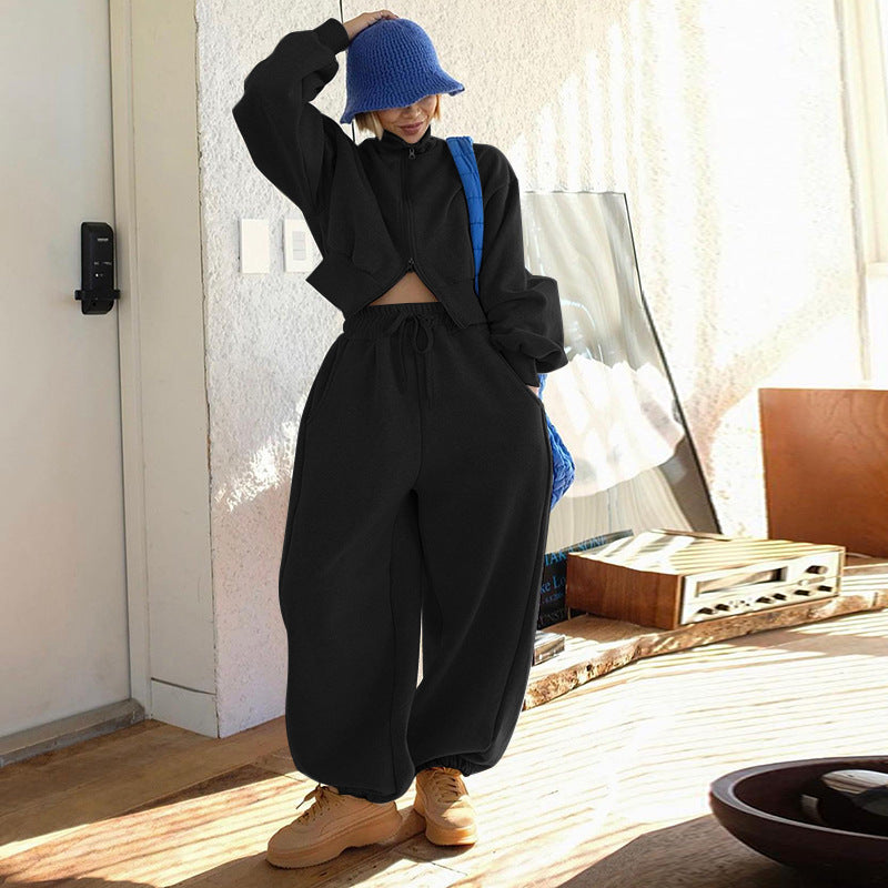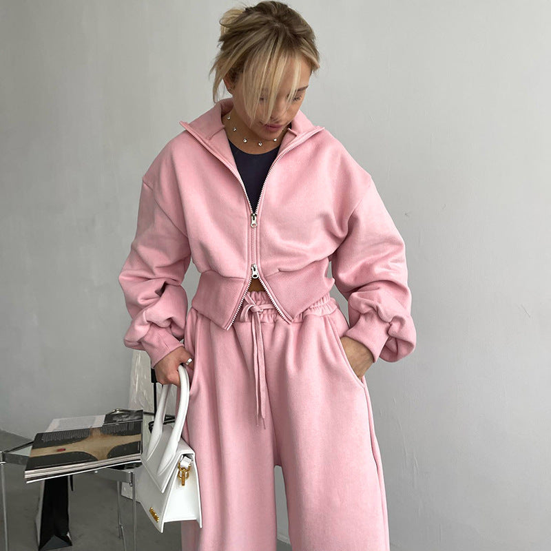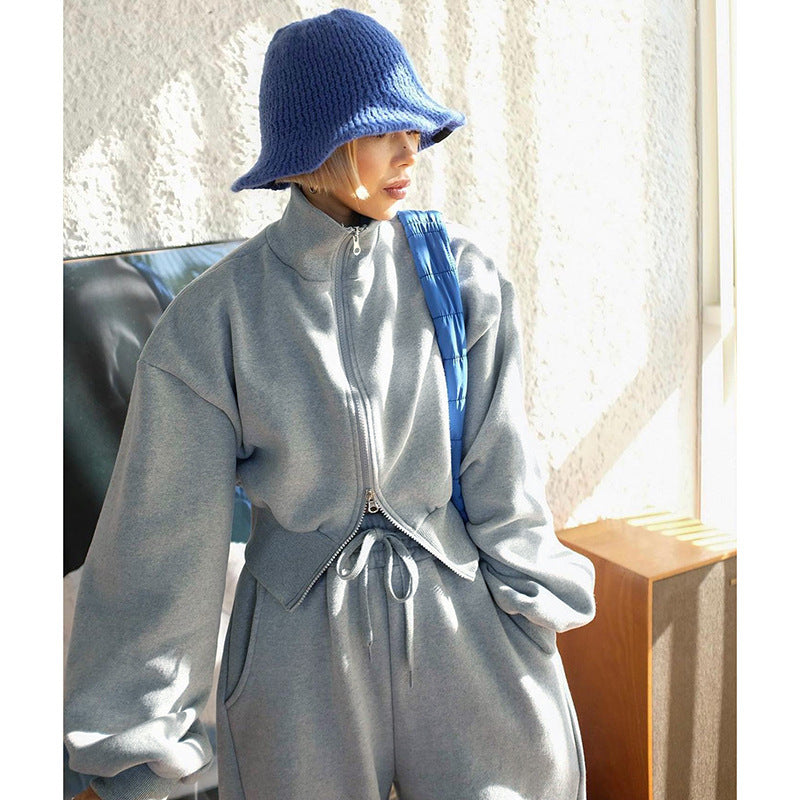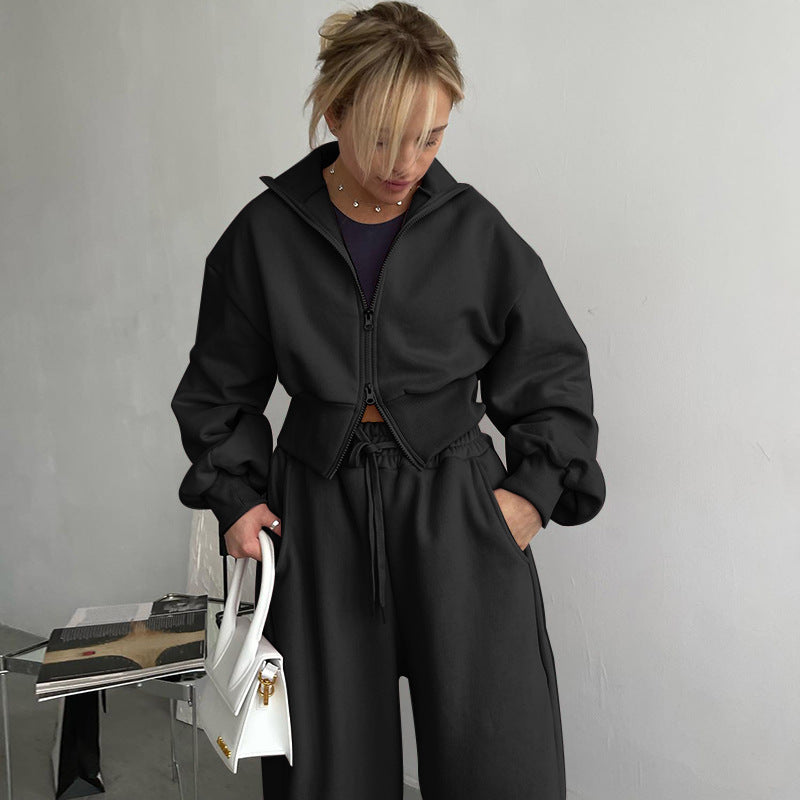 Double Zipper Jacket Casual Sweatpants Two-piece Set
