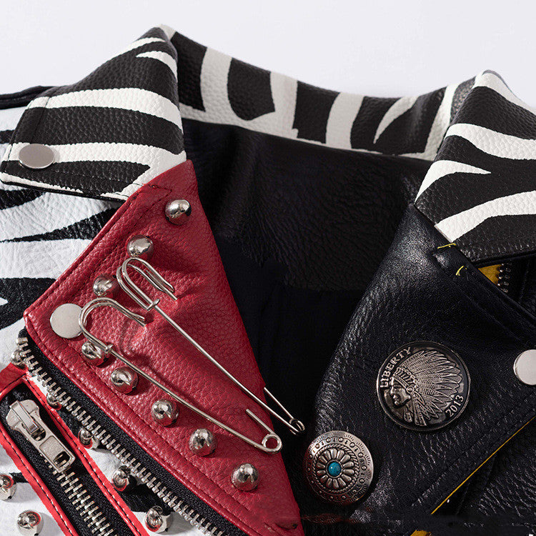 European And American Fashion Personality Graffiti Slim Leather Jacket Women