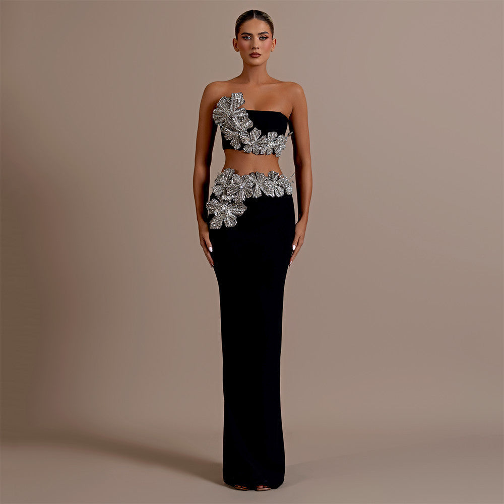 Heavy Industry Set Diamond Tube Top High Waist Skirt