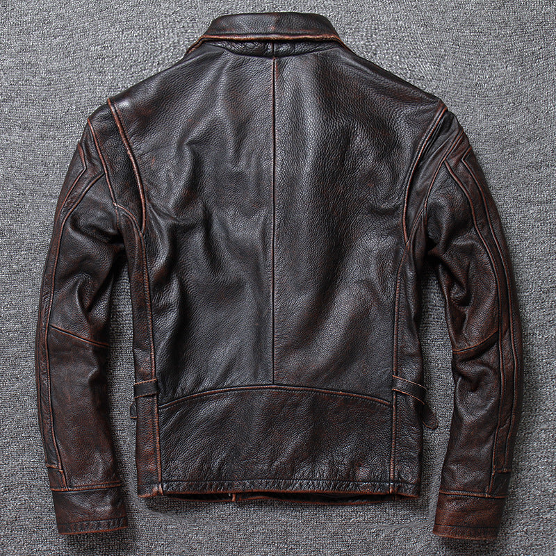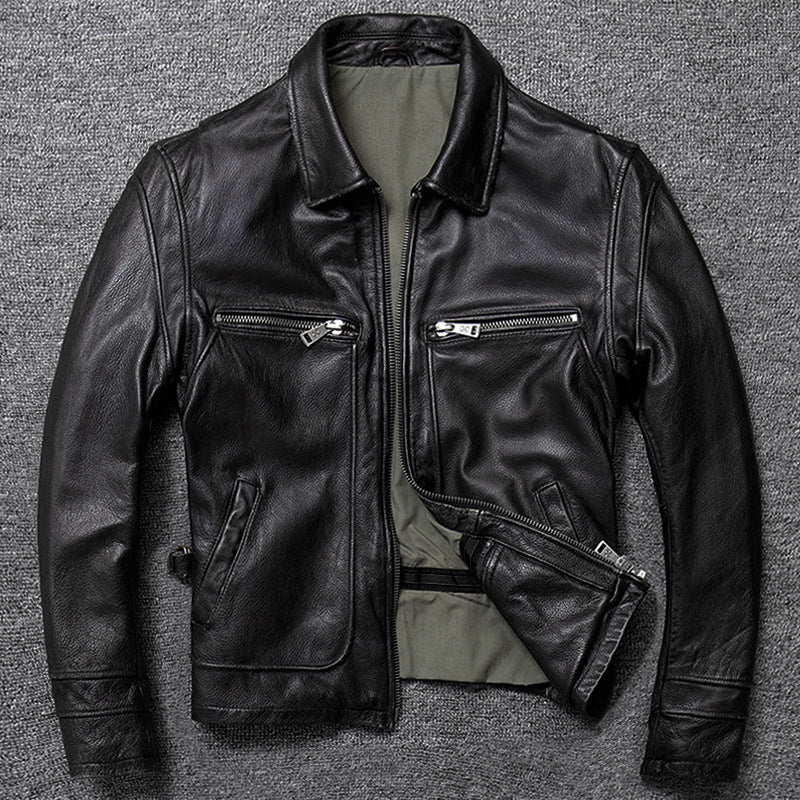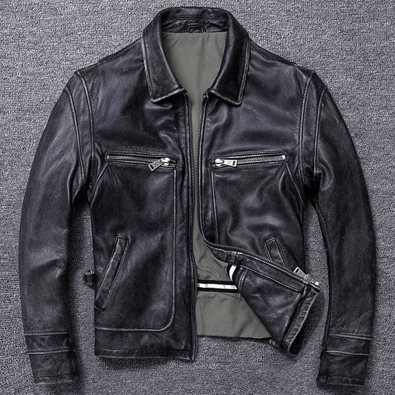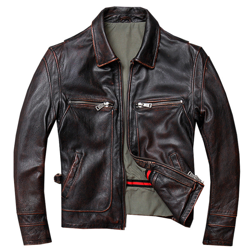 Leather Jacket Men's Short Retro Old Casual Top Layer