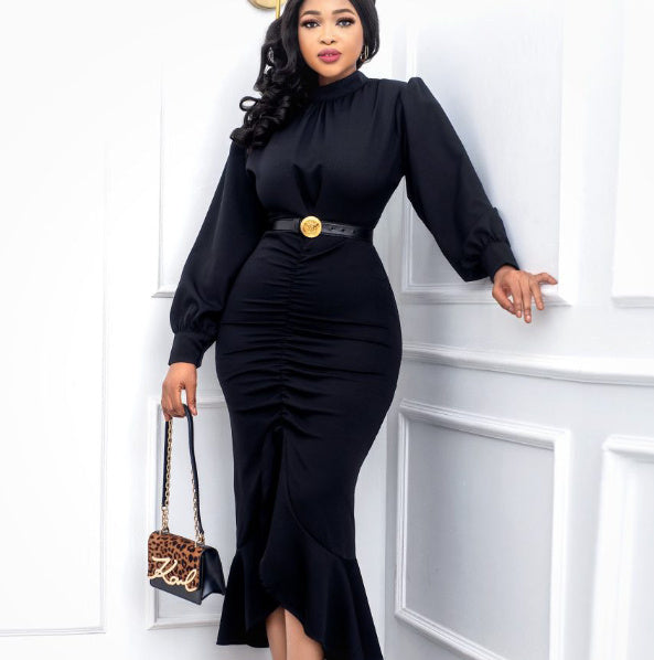 Long Sleeve Elegant Slim Fishtail Party Dress Lightly Mature Dress