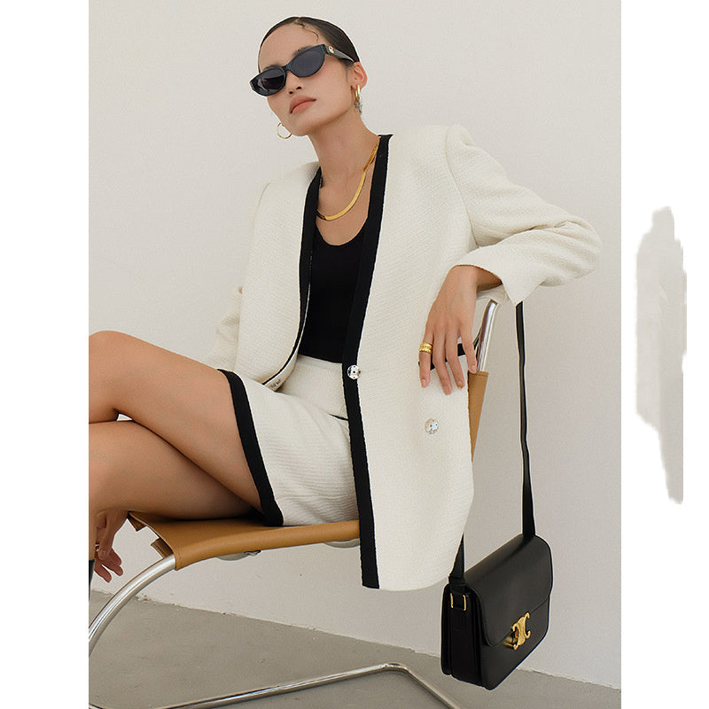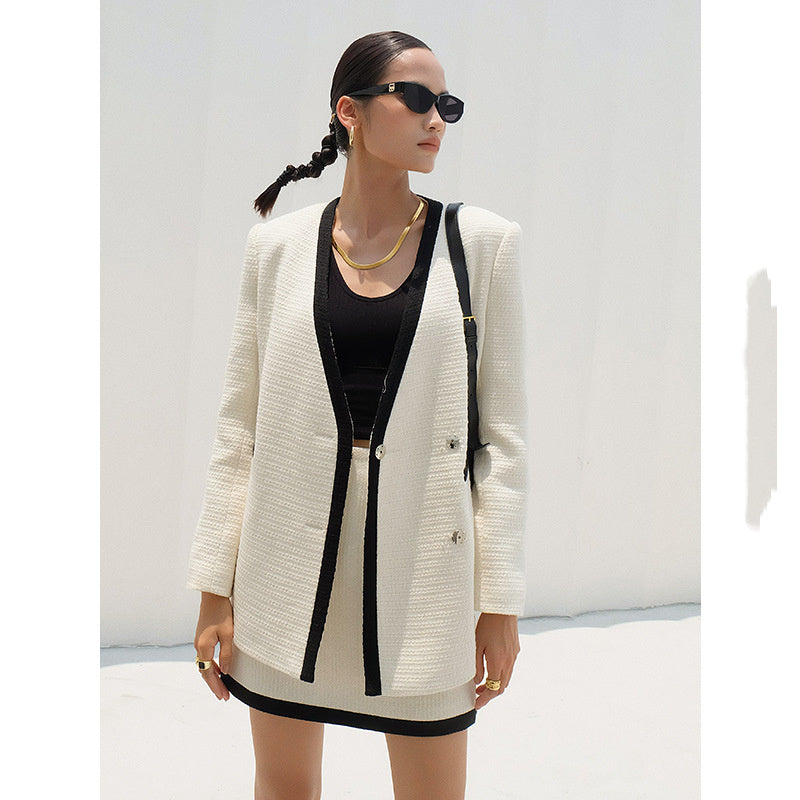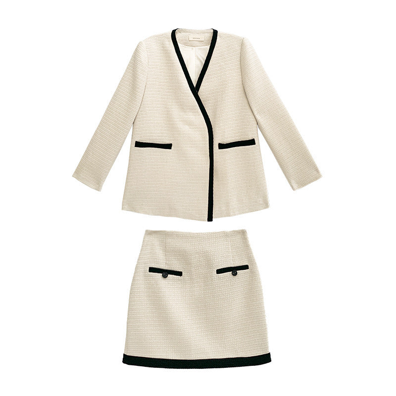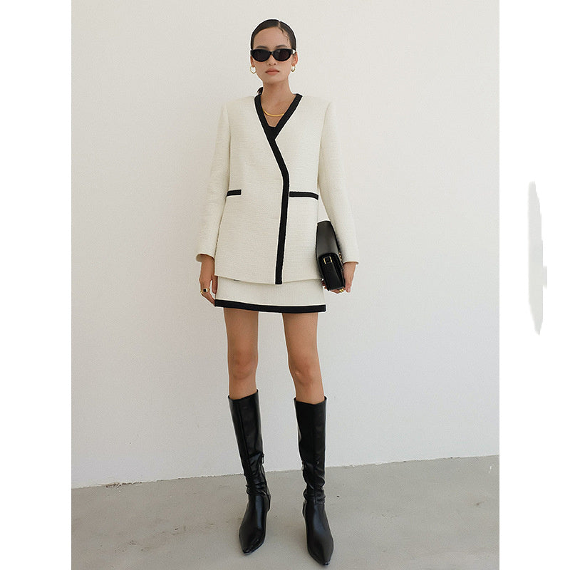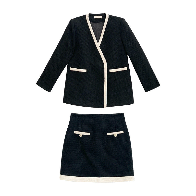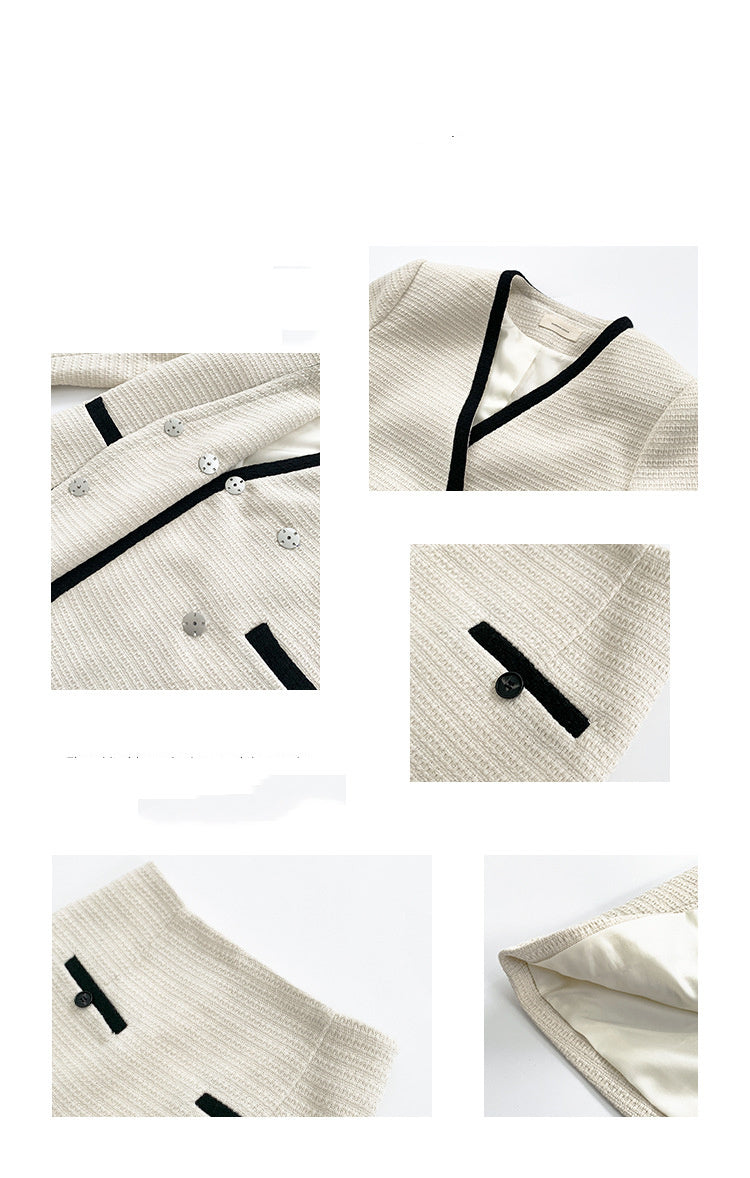 Long-sleeved Cardigan Color Block Top Half Skirt