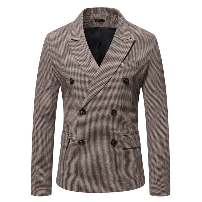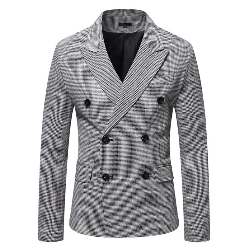 Men's Houndstooth Loose Double Breasted Casual Suit Jacket