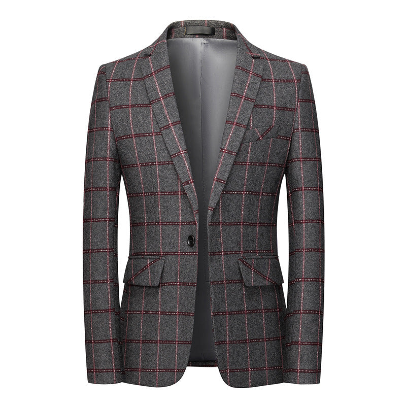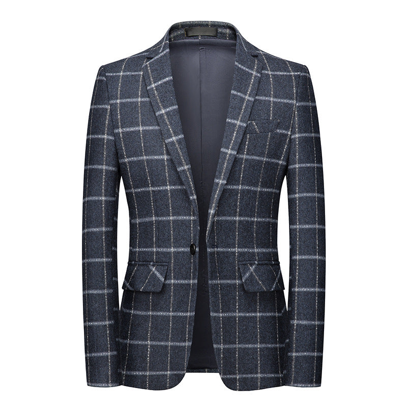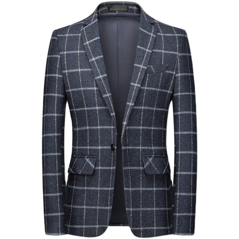 Men's Single Suit Korean Style Youth Fashion Casual Business Plaid Slim Fit One Button Men's Suit