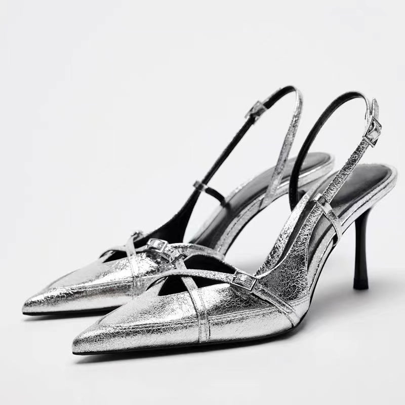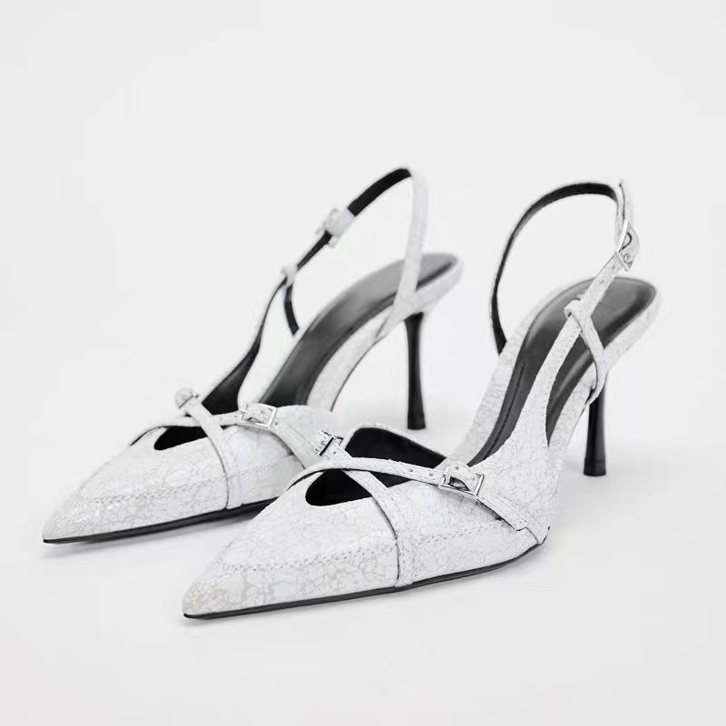 Solid Color Cross Buckle Pointed High Heel Sandals