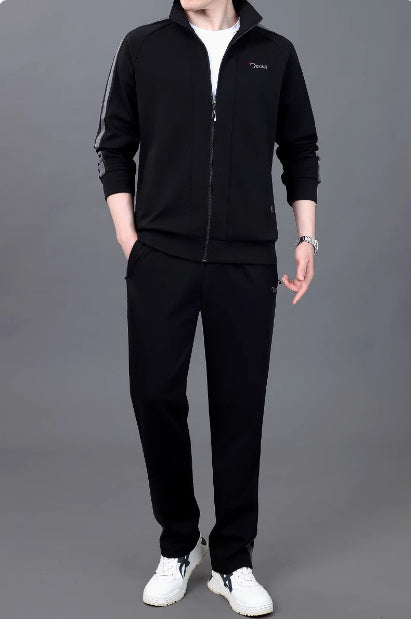 Spring And Autumn High-end Cotton Sweater Stand Collar Fashion High-end Two-piece Suit