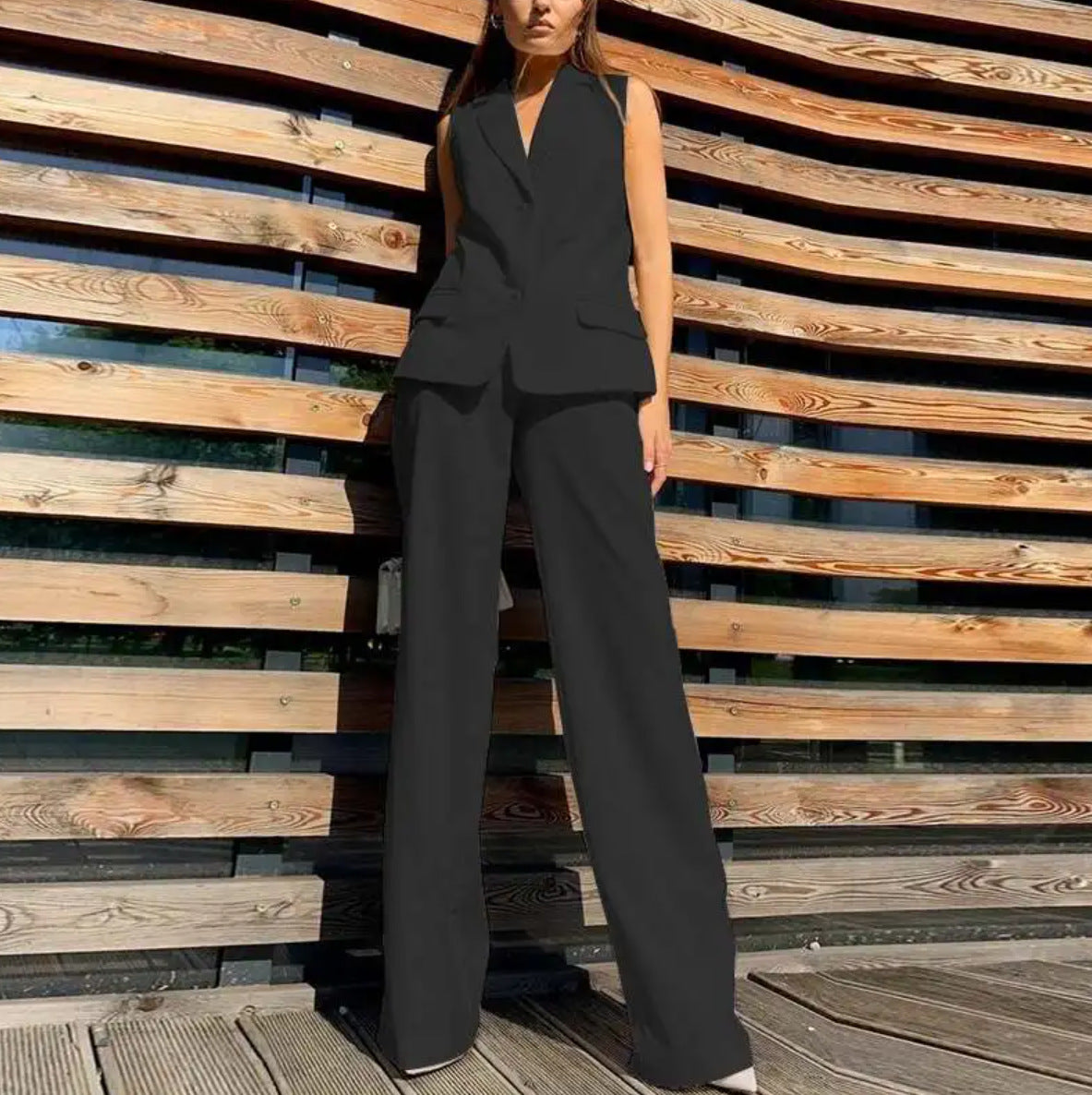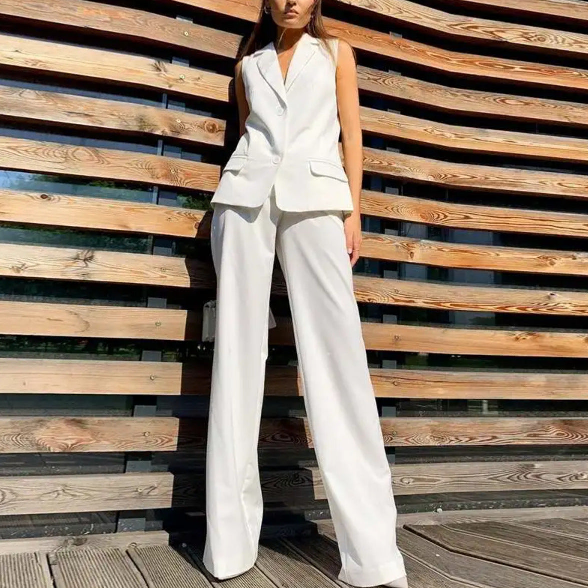Suit Lapel Vest Jacket Wide Leg Pants Casual Suit
