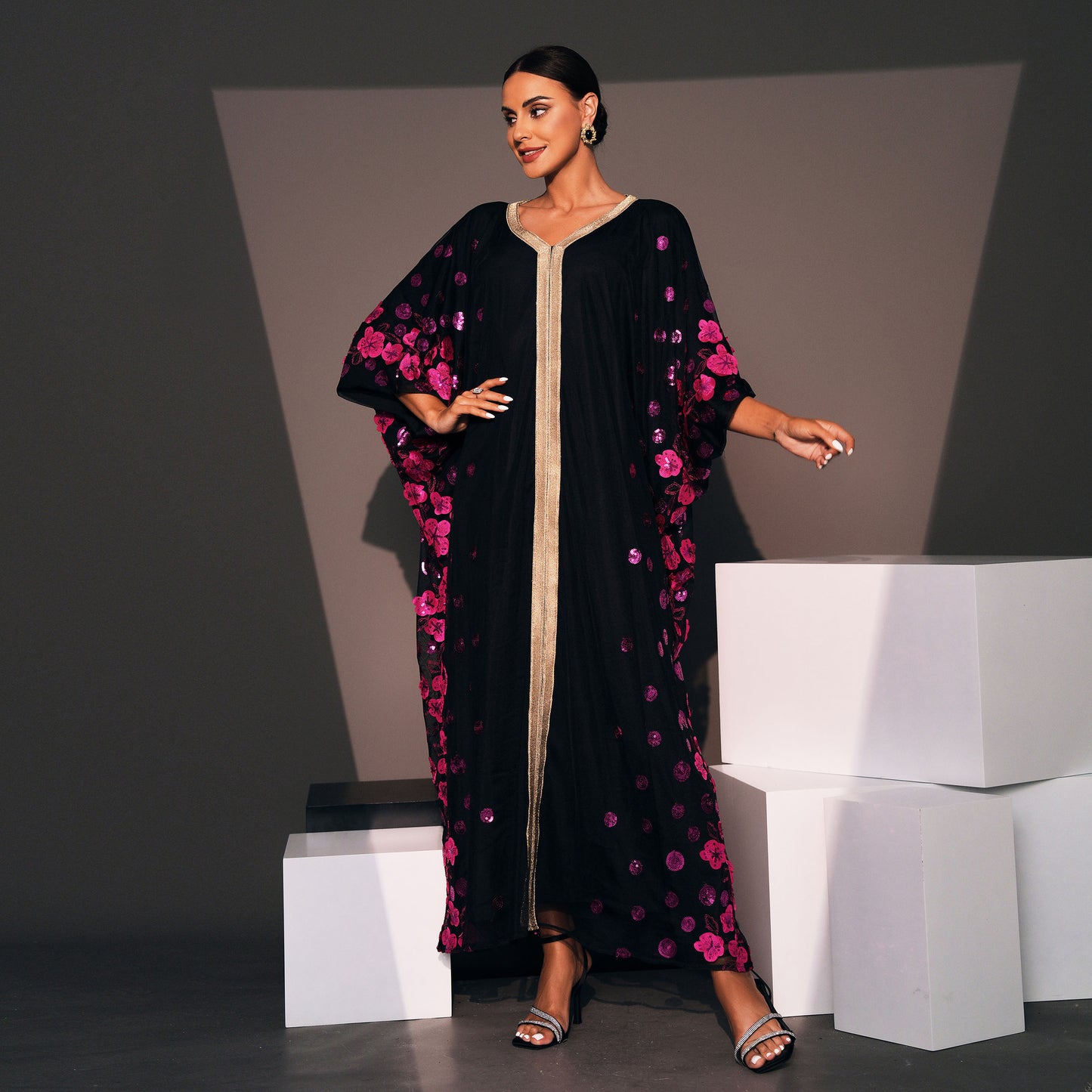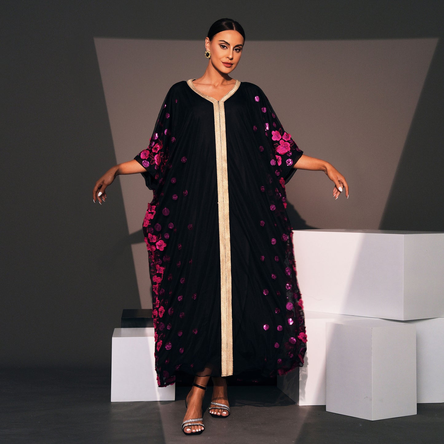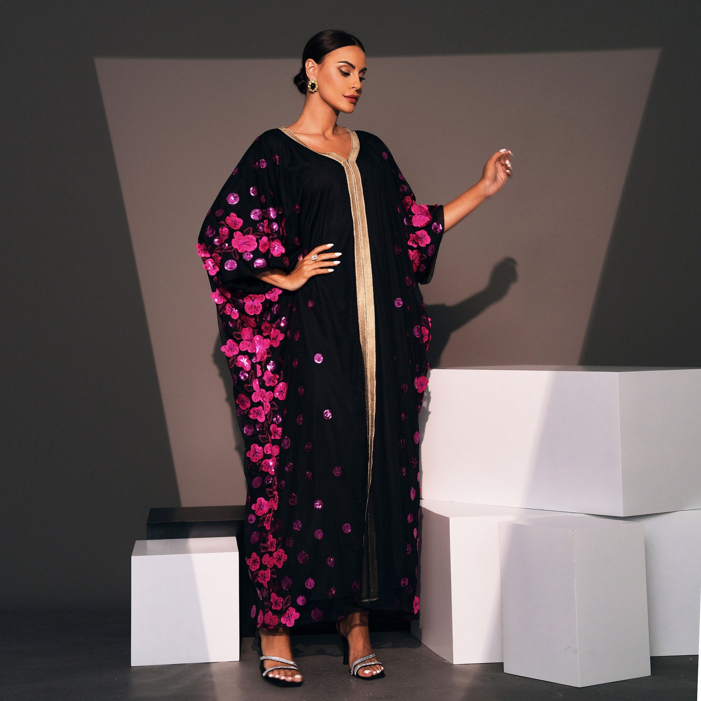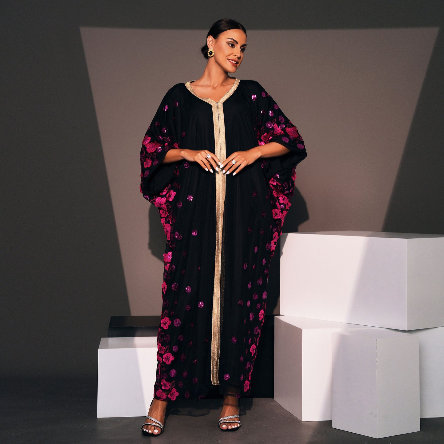 V-neck Batwing Sleeve Loose Sequins Plus Size Dress