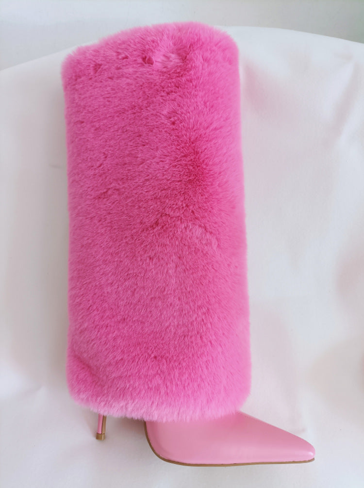 Winter Stiletto Heel Wool Tube Women's Fashion Shoes Wedding Banquet