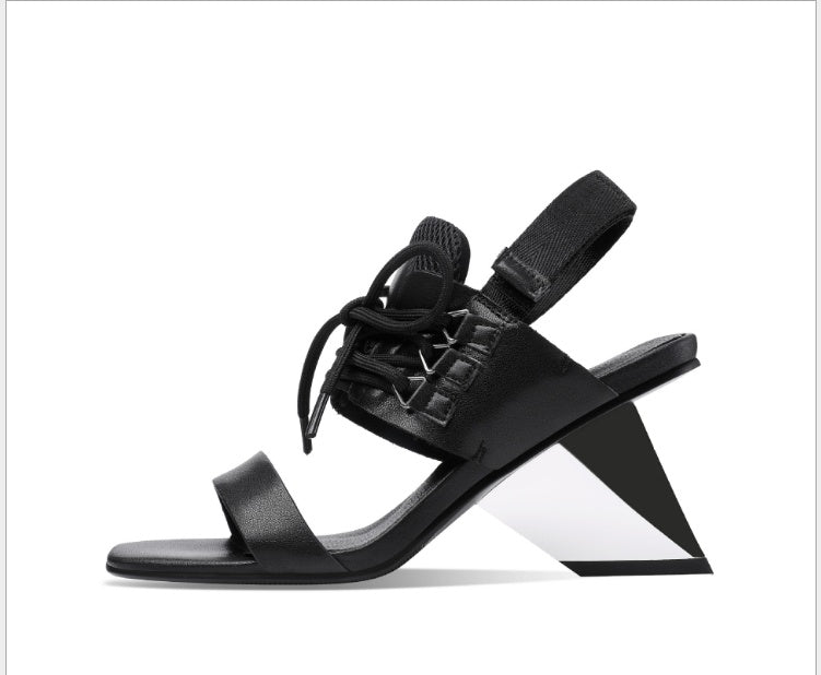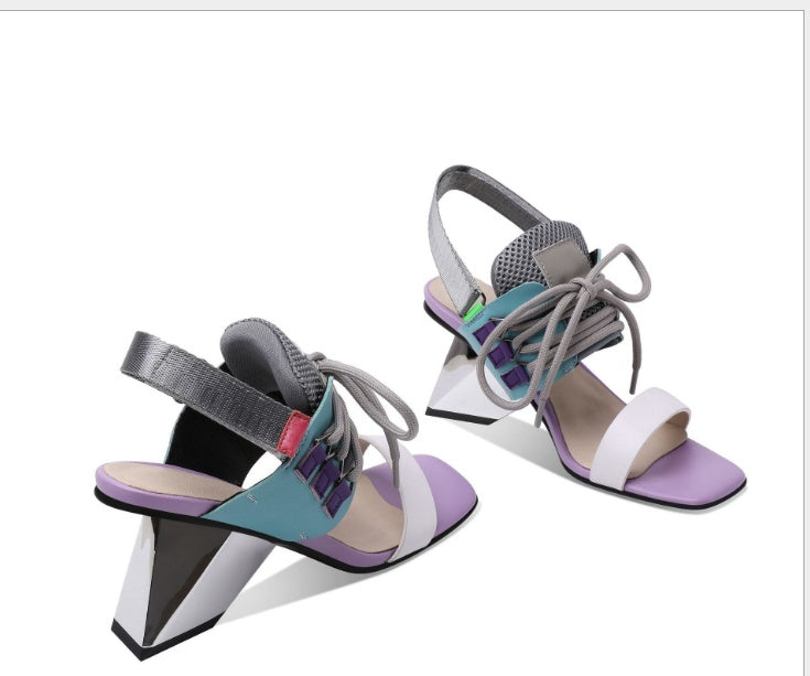Women Shoes Special-shaped Heel High-heeled Leather Color Matching Strap Summer New Foreign Trade Sandals