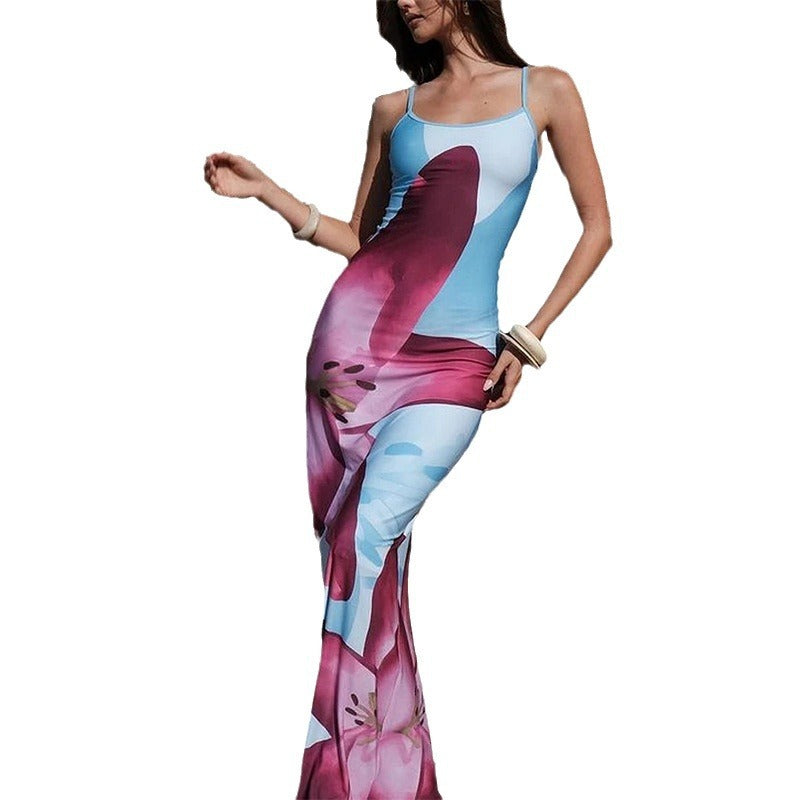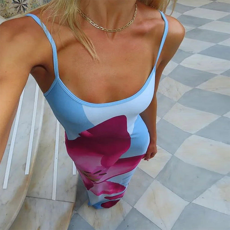 Women's Fashionable Elegant Floral Print Slim Strap Dress