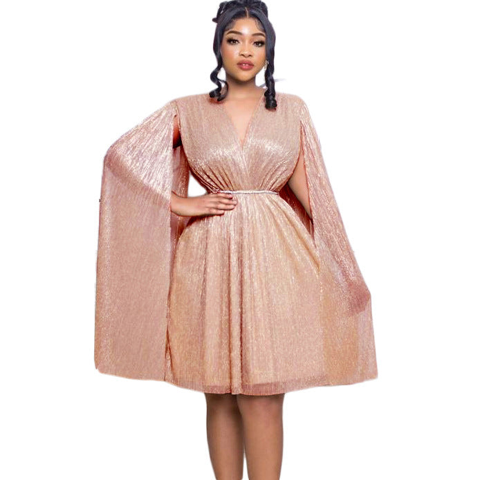 Women's Fashionable V-neck Temperament Long Sleeve Cape Waist Dress