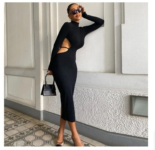 Women's New Fashion High Neck Long Sleeve Slim Dress