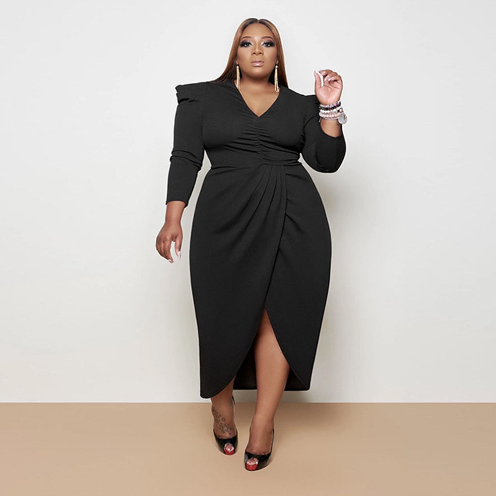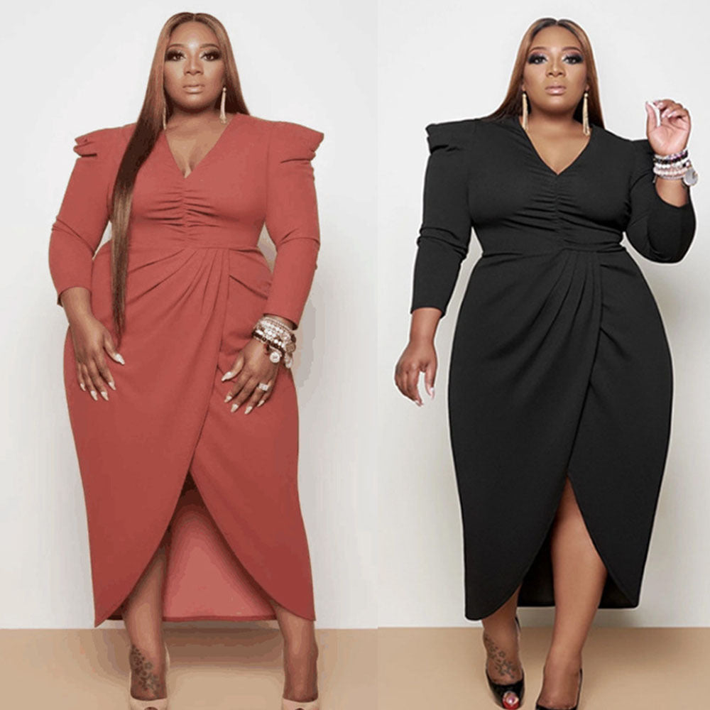 Women's Plus Size Fall V-neck Irregular Long Sleeve Dress