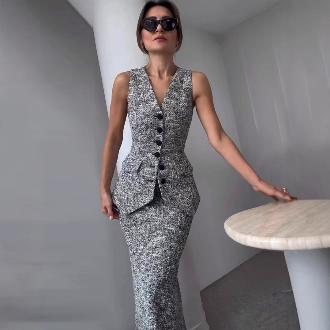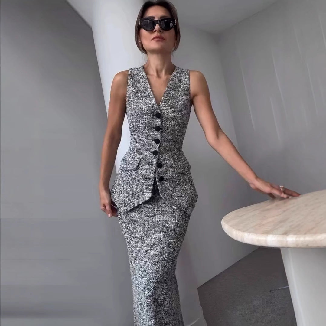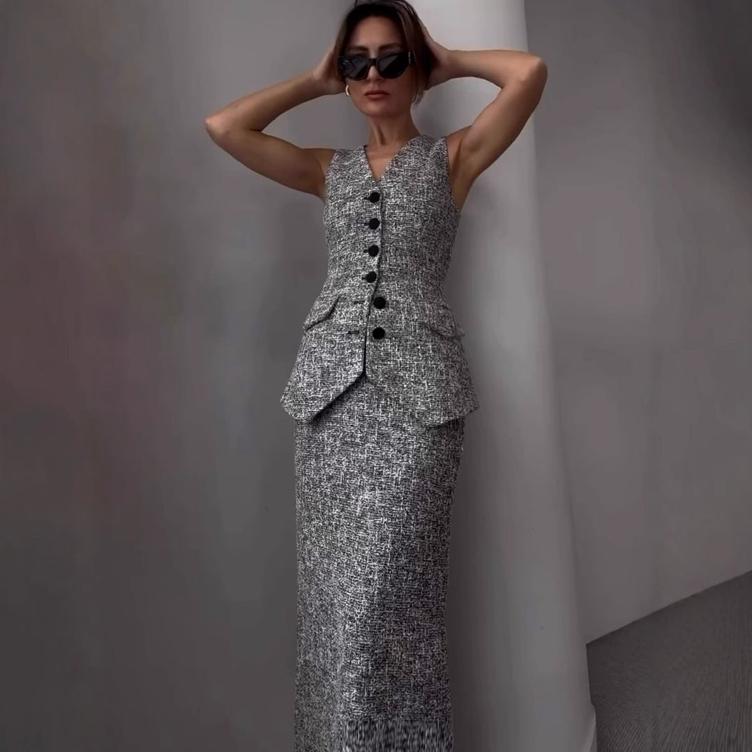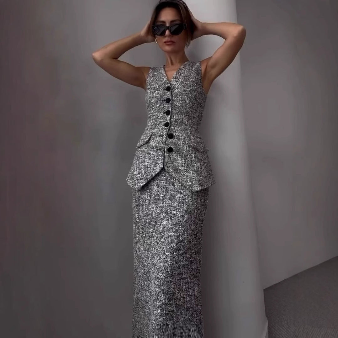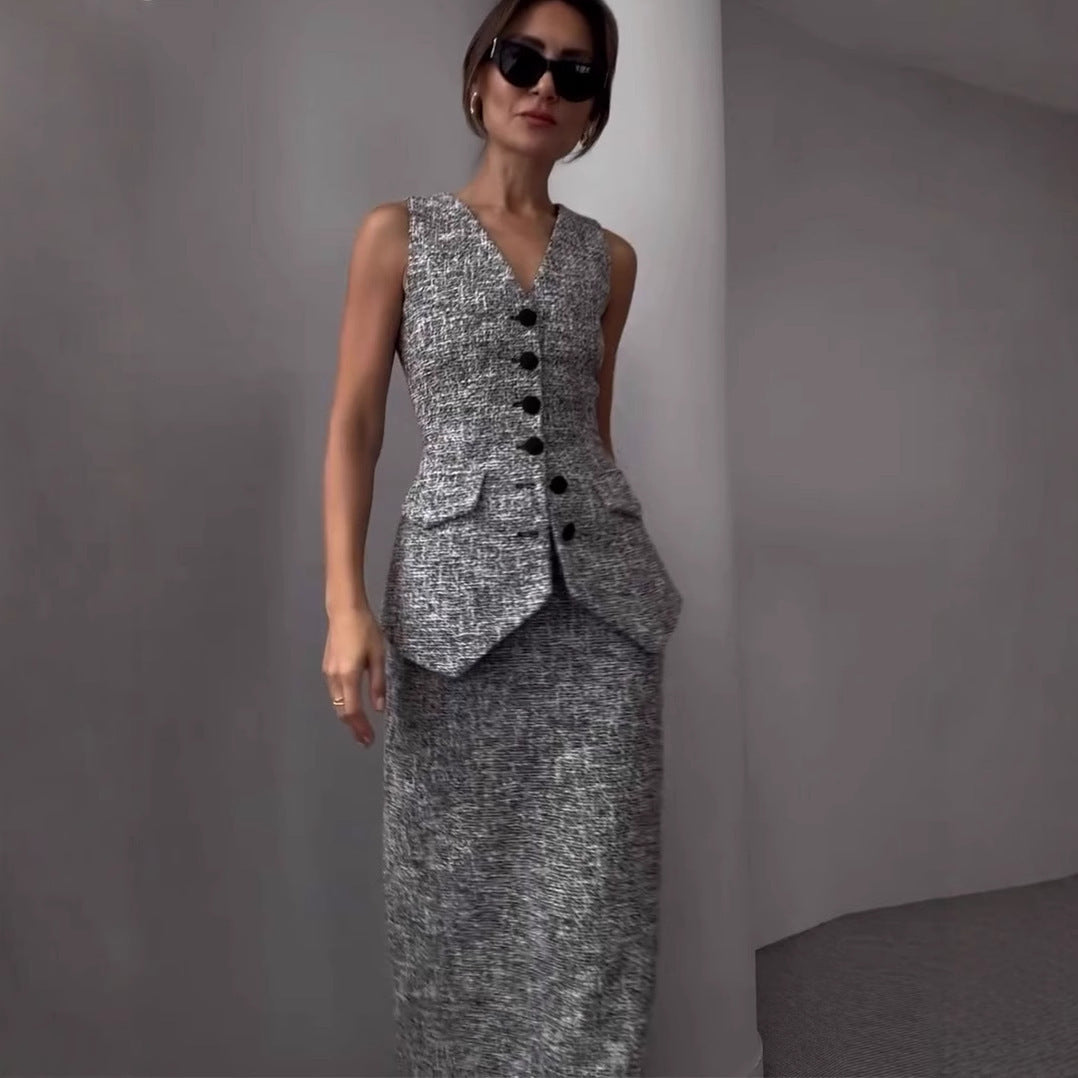 Workplace Slimming Solid Color Temperament Vest Set, Two-piece Set